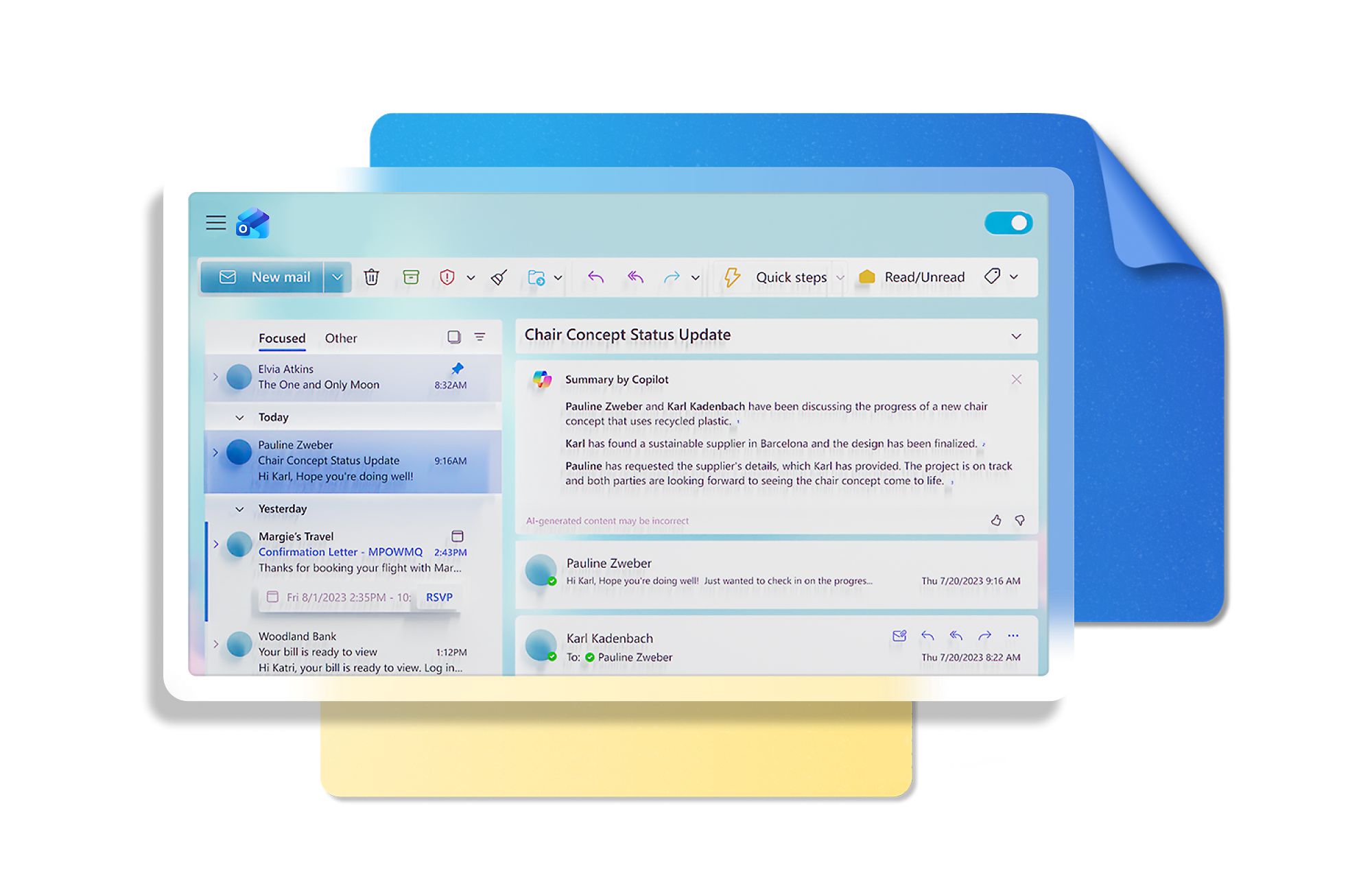 Con Copilot per Microsoft 365, documenti, presentazioni, email e riunioni si trasformano in output pronti in pochi minuti.